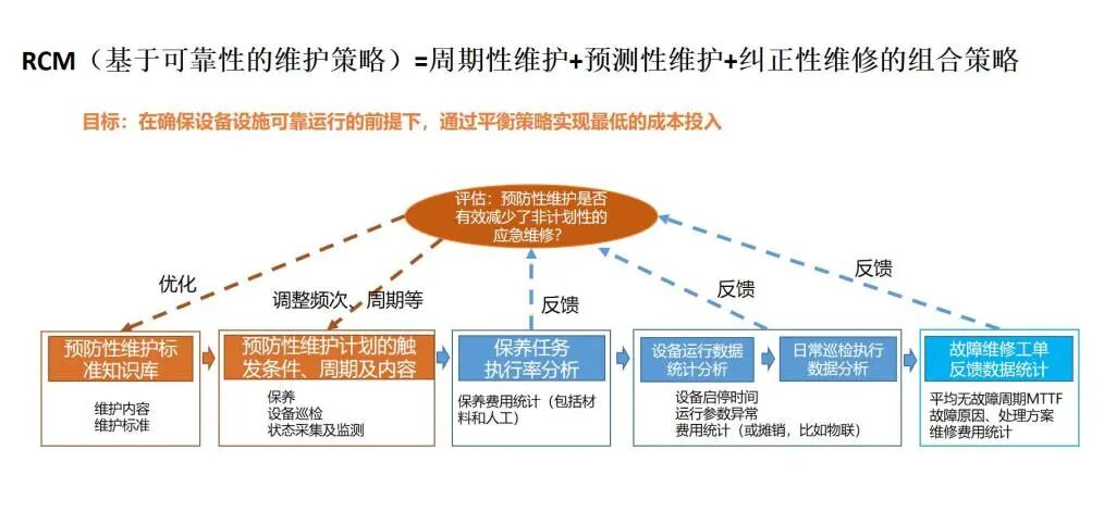 通过分析故障、运行和巡检数据,对周期性维护、预测性维护和纠正性维修的标准和计划进行优化,实现以较低的成本投入,确保设备设施可靠运行,助力基于可靠性维护策略(RCM)的落地。