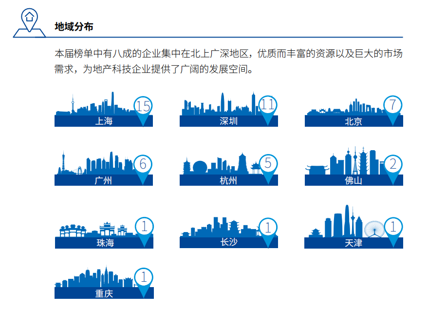 本次参加评选的房地产科技企业中,既有地产开发商运营商,从现有的房地产开发和运营项目角度探索科技创新,也有很多科技创新企业,尝试将科技产品、创新应用、创新流程融入房地产行业。大部分房地产开发商及运营商都专门成立了科技子公司,专注于开发科技创新产品及应用,同时也与外部科技企业保持紧密的合作关系,借助其高频率、深积累、广覆盖的业务场景不断培育有商用价值的技术与产品应用;科技创新企业也将衣食住行中的“住”作为下一个颠覆性的应用场景,努力在房地产行业做出更大的突破;投资领域也涌现出众多专注于地产科技领域的投资公司,以资本推动房地产科技发展。