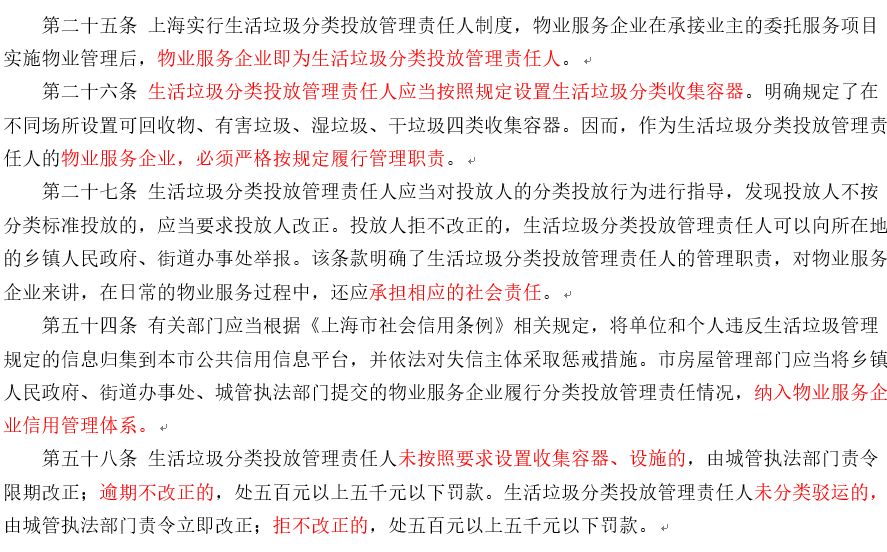 上海在垃圾分类投放管理物业责任方面,作了更加清晰细致的规定: