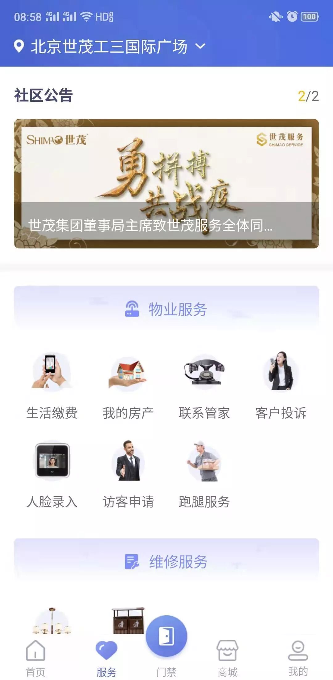 世茂服务商办事业部针对写字楼复工防疫,制定预案并实施了一整套完善的标准化防疫工作规范,同时疫情期间在“茂家”APP提供包括无接触外卖、快递“跑腿”等免费便民服务,全力为所管项目的复工人员保驾护航。