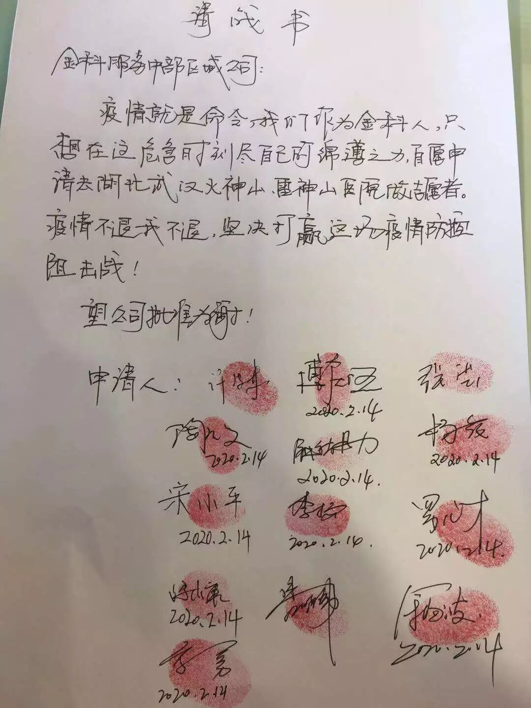 正如在金科志愿者在临行前所宣誓的那样:“我自愿申请前往火神山医院进行支援,愿为平息疫情贡献一份微薄之力!”