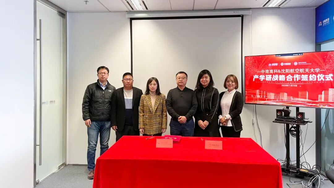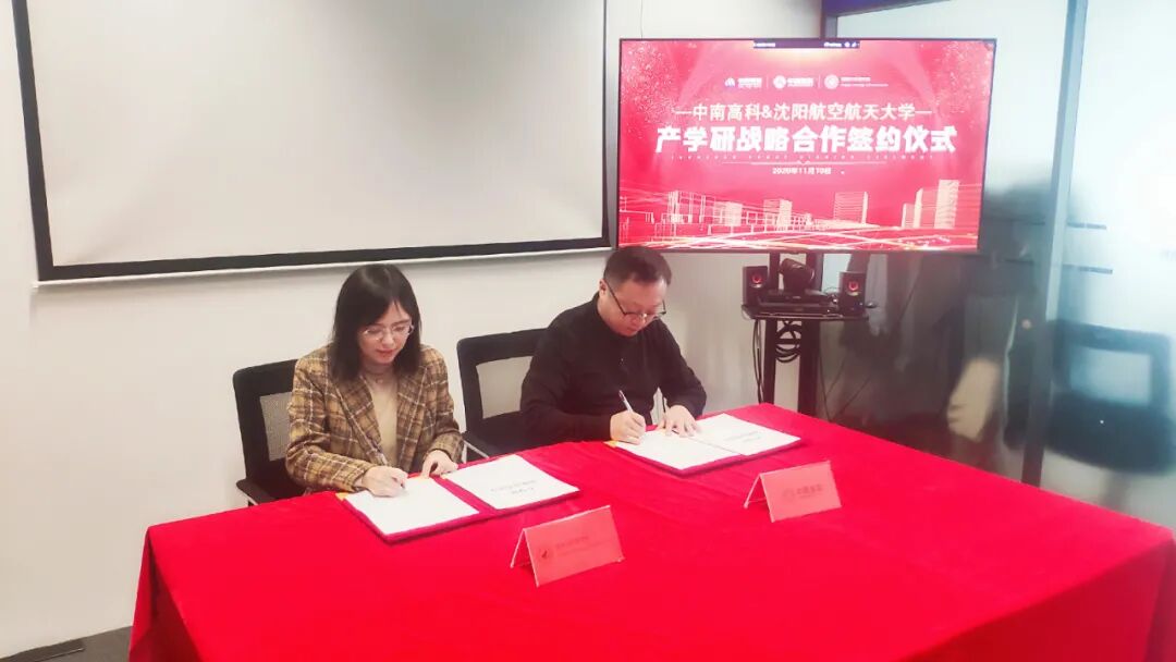 沈阳航空航天大学始建于1952 年,是原航空工业部所属的6 所本科航空院校之一,以航空宇航为特色,工、理、文、经、管、艺等学科协调发展的多科性高等院校,是教育部、中航工业集团公司与辽宁省三方共建高校,是国防科工局与辽宁省共建高校,是辽宁省装备制造业紧缺人才(航空航天)培养基地,已经基本建设成为“国防科技人才培养基地”、“辽宁老工业振兴人才培养基地”,努力打造“国内的装备制造技术工程研究基地”。沈阳航空航天大学能源与环境学院院长杨天华、副院长李彦龙、博士周全以及中南高科产业集团东北区域总经理吕茂辉、招商营销总监肖博、沈阳区域产业服务经理崔丽娜出席了本次签约仪式。