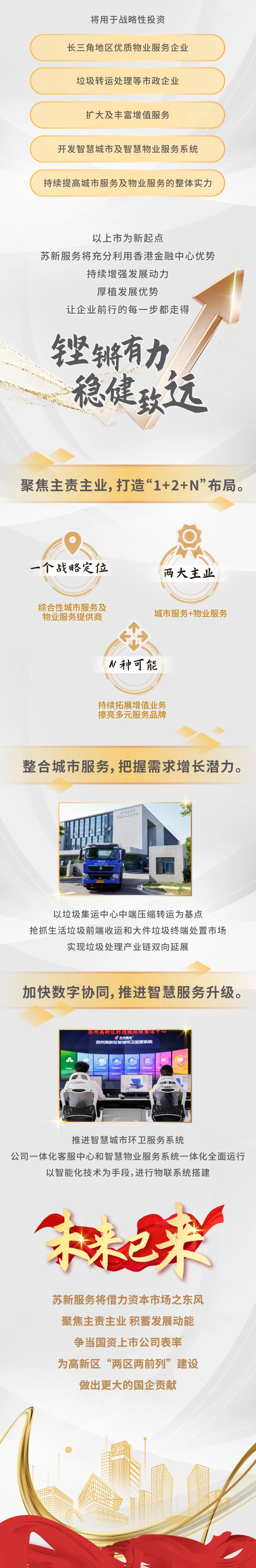 苏新服务在香港联交所成功挂牌上市,是公司踏上国际舞台的新起点,相信苏新服务能够以迈入H股资本市场为契机,进一步巩固行业地位,增强服务与盈利能力,持续为投资者带来丰厚的回报。作为保荐机构,交银国际也将做好苏新服务上市后的持续督导工作,陪伴公司稳健前行。