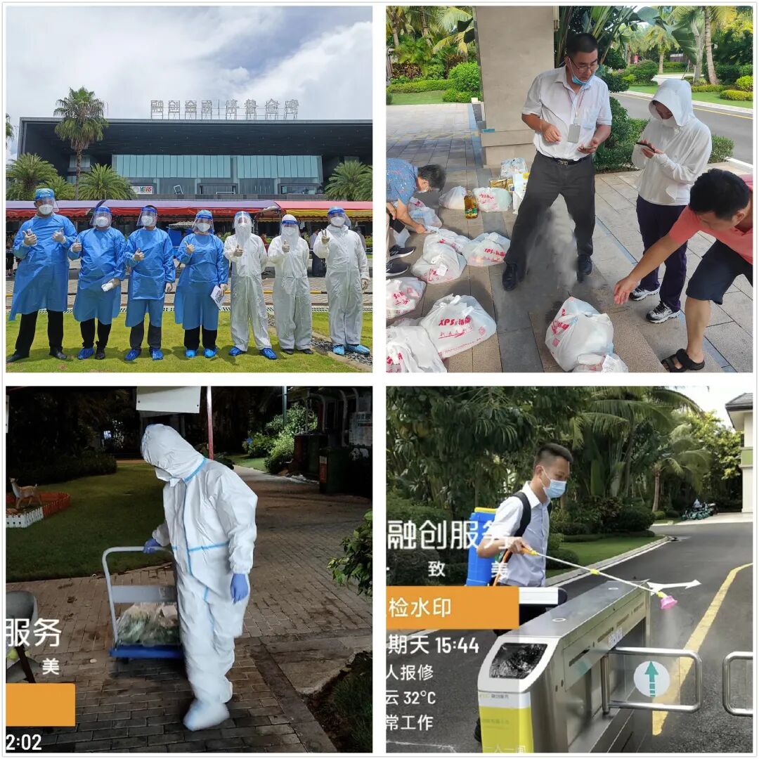 8月的疫情打乱了海南人民的生活,静态管理、封控、物资紧张......疫情当前,为了早日恢复正常生活,每个人都在努力。奋战一线的融创服务人也在迎难逆行,疫情管控之下,面临几十名保洁阿姨或员工被封控无法出来的困境,项目时间启动紧急预案,全员补位。工程、管家化身为“保洁员”进行公区楼道及走廊清洁,运作扫地车清扫落叶,承担垃圾清运工作;秩序员化身为“消杀员”负责消杀工作,业主无法外出采购;项目经理化身为“采购员”到超市批量采购,运送回小区挨家挨户配送上门,保障业主的生活。他们,为这场“防疫狙击战”注入了一束亮光。艰难时刻,总有一些人逆行而上,只为守候后方的幸福与安稳,致敬一线工作者,致敬全体物业人员。相信在大家的努力下,这场“防疫狙击战”一定能赢。