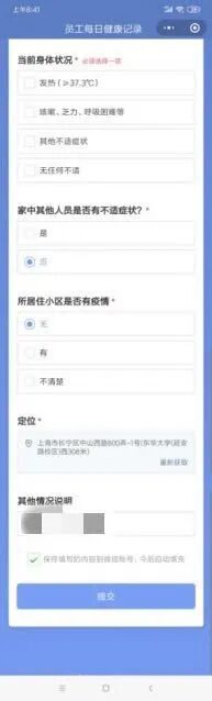 ▶ 对于本部所有员工每天必做自行检查,通过专用扫描记录,登录、填写个人、家人、社区、辖区等健康状况。确保全覆盖、不漏人。