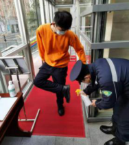 考虑到疫情时期很多人会选择自驾来上班,在门岗采用双车道,在早晨上班高峰时刻(8点半之前),门岗进口以单行道的模式,只进不出,两部车同时进入大院,提高车辆通行效率。另外为严挡病毒,落实车胎消毒措施,真正地把工作做到疏而不漏。