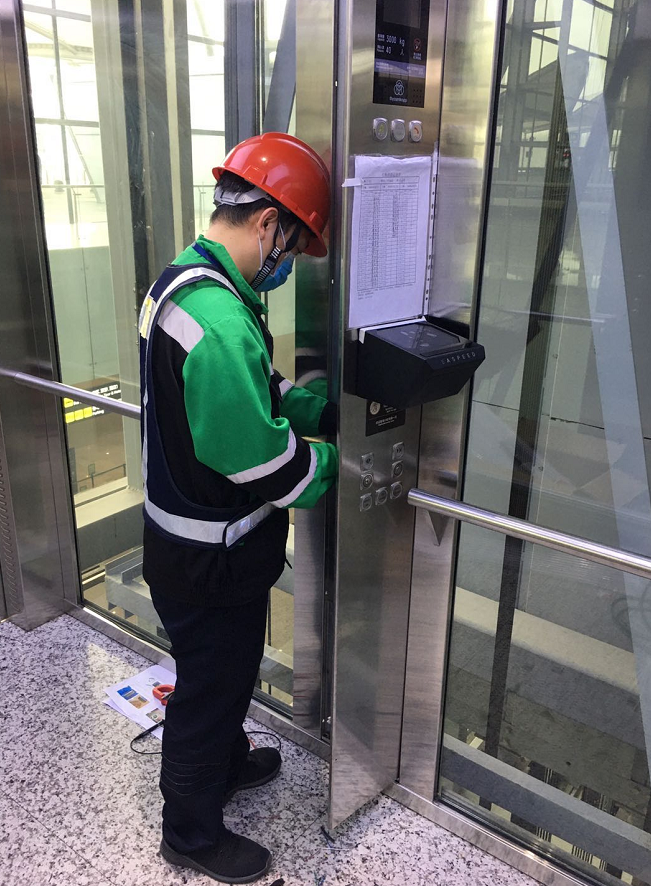 二号航站楼从台电梯无接触红外线按钮的安装,到无接触“全息投影”触控按钮的升级,在这一次次的设备升级、改造中,离不开保利物业工程师们的辛勤付出。